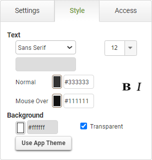 Enter a Hex color code or click on the color box to pick a color for the caption text to change to when an app user mouses over it.