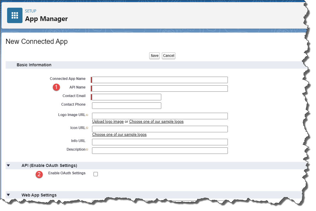1. In the Basic Information section, enter a Connected App Name, API Name and a Contact Email address.