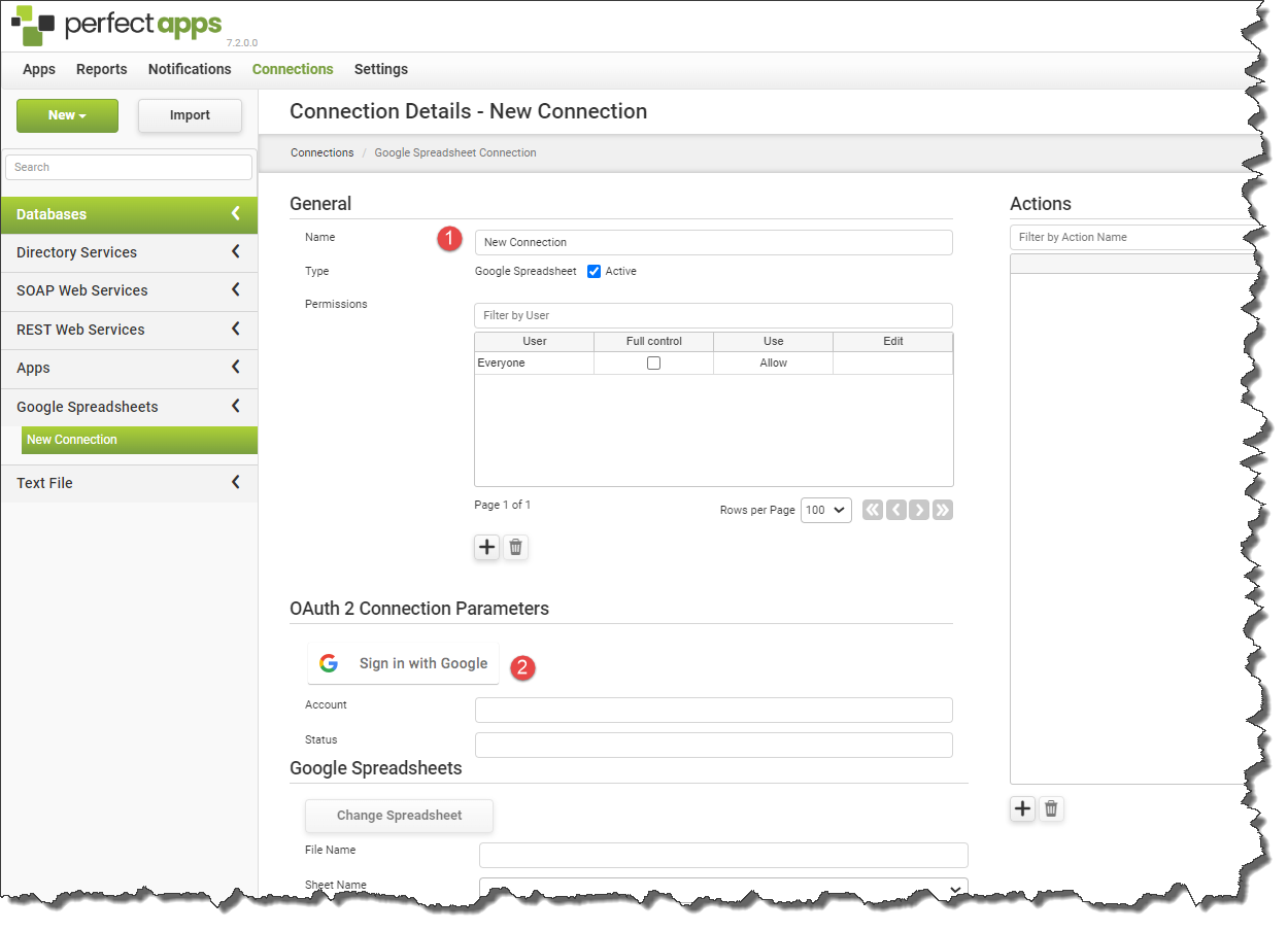 See also: Google Spreadsheet Connection Actions, Text/CSV Connections, Connection and Action Permissions
