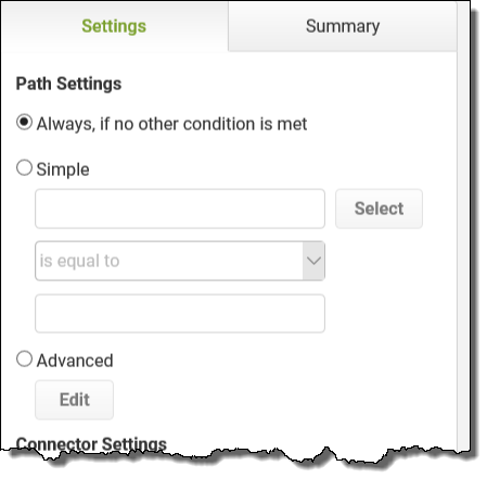 If selected, this condition indicates that the path will always run when the app is submitted unless an alternative path's condition is met.